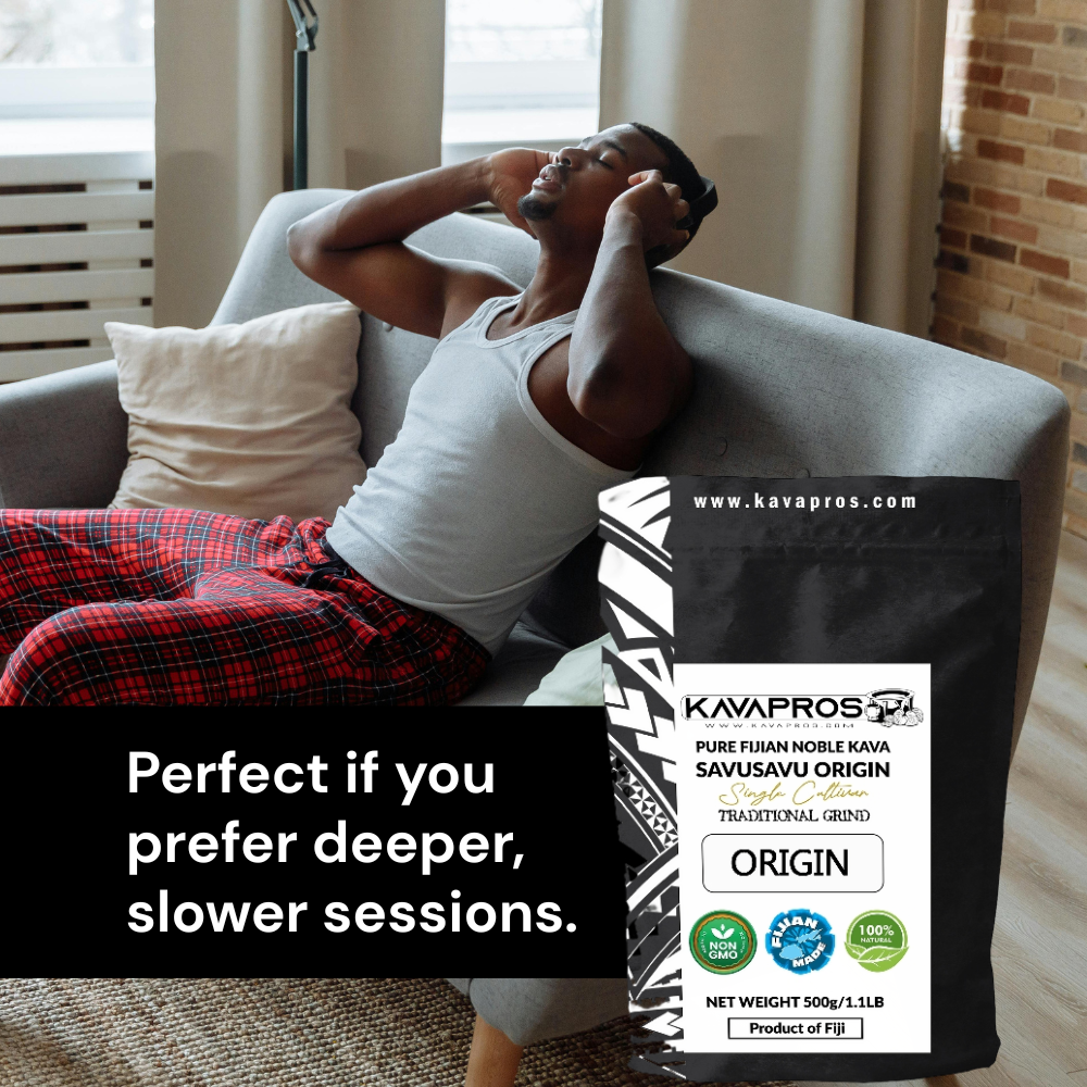 The Origin is a very sleepy kava where you can strongly feel the calm in the body. Not to be confused with Savusavu Origin. This kava has body-focused effects and you will definitely know when it's taking effect. It won't take a long time until you physically feel the heavy sedation and euphoria.